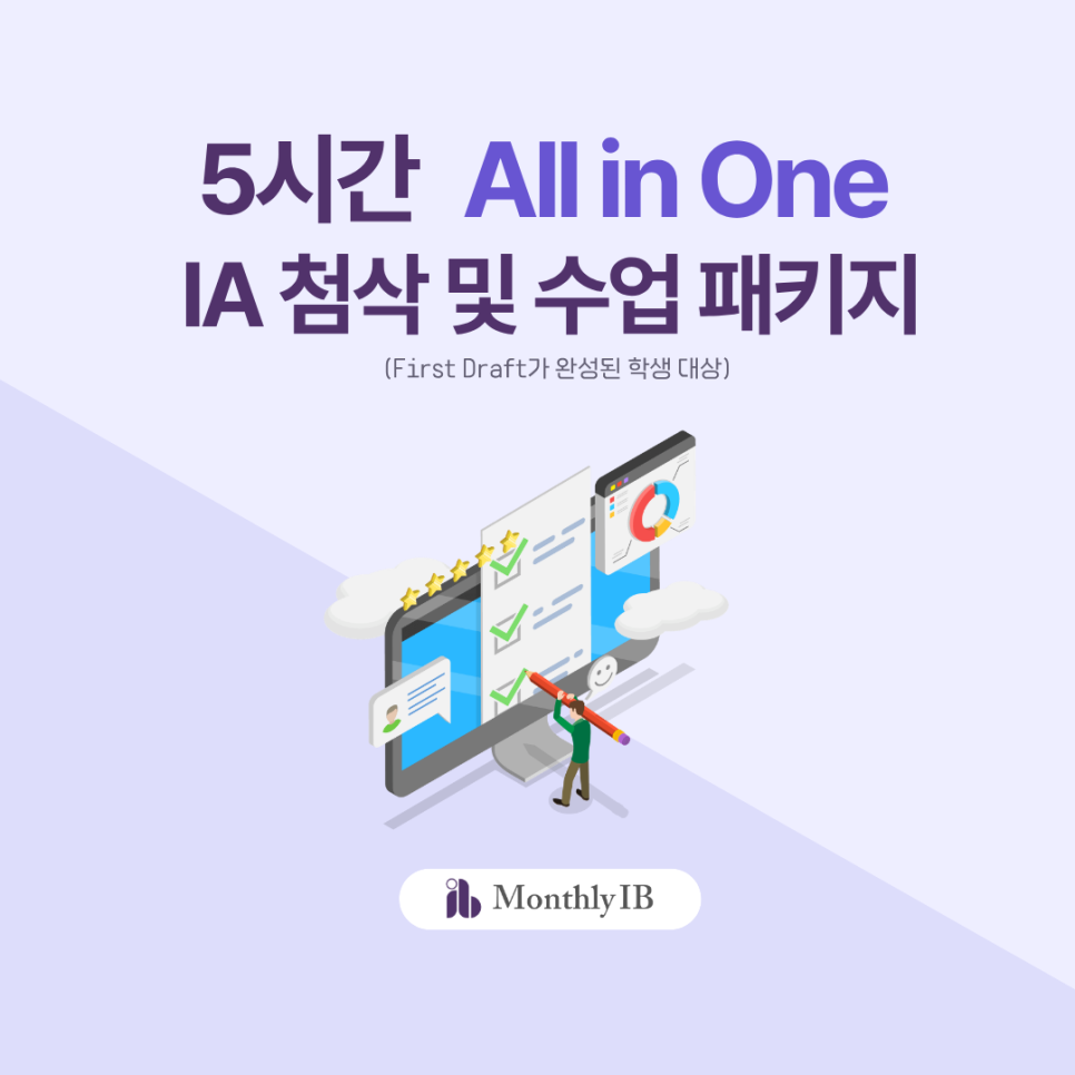 ▶5시간만에 완성하는 IB IA 첨삭&수업패키지는 월간IB에서!